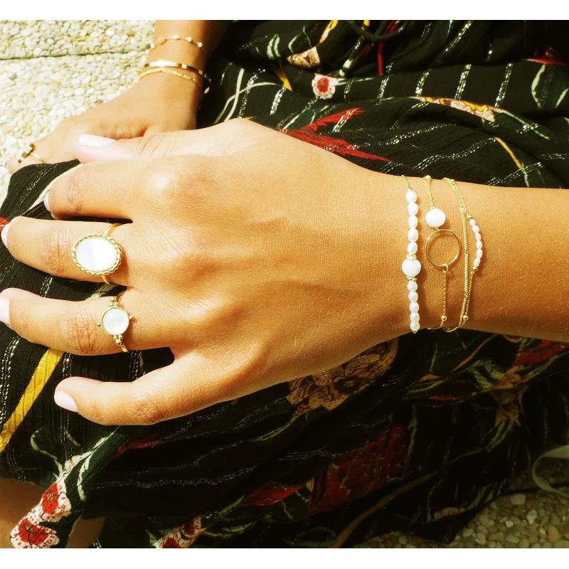 Gardez le cap avec cette ravissante boussole en nacre qui sublimera votre main à coup sûr.
