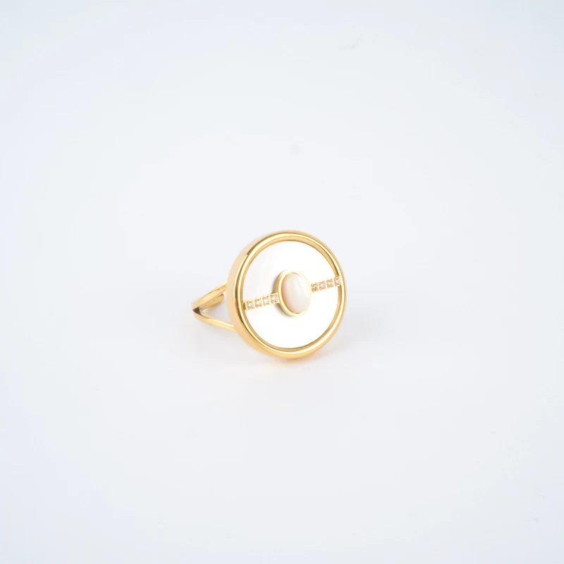 Bague Diana Nacre Et Oxyde Zirconium En Acier Doré – Zag Bijoux