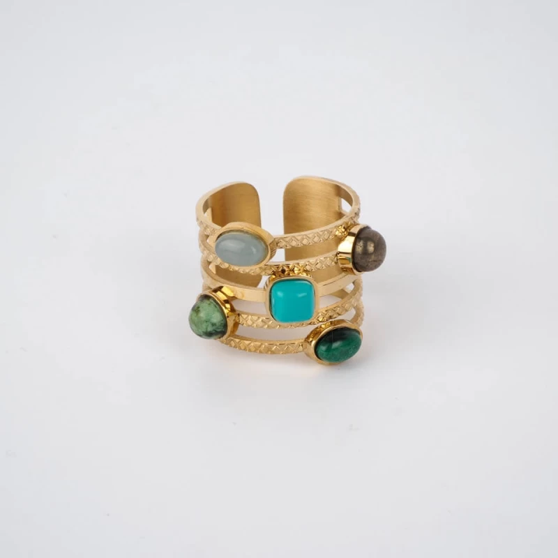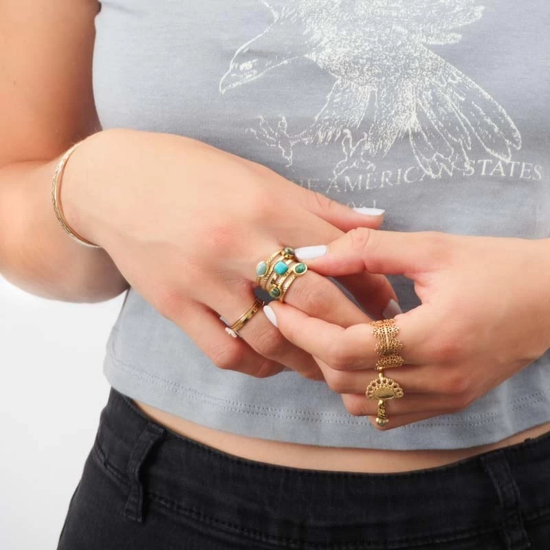 Bague Hestia Turquoise Acier Or – Zag Bijoux
