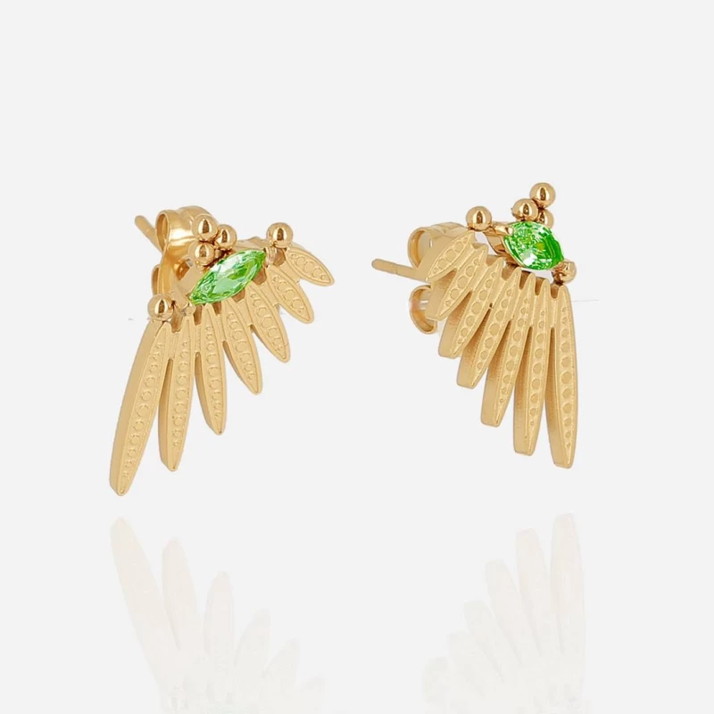 Boucles D’oreilles Clous Wing Vertes Acier Doré – Zag Bijoux