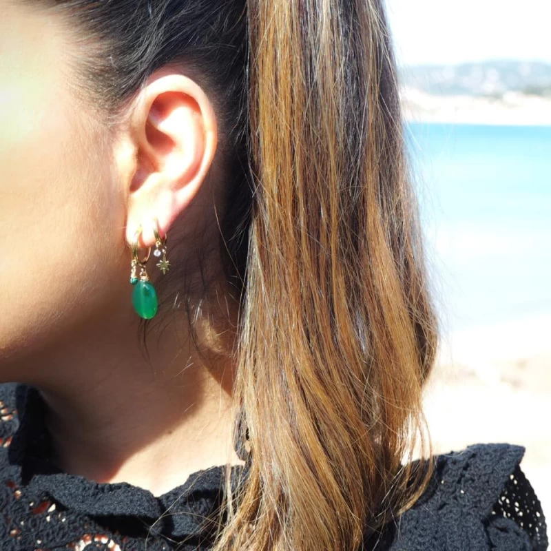 Les pierres en aventurine montées sur ces créoles sont volontairement de tailles inégales.
