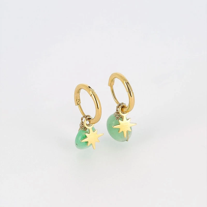 Boucles D’oreilles Créoles Boussole Onyx Verte – Zag Bijoux