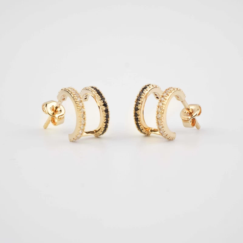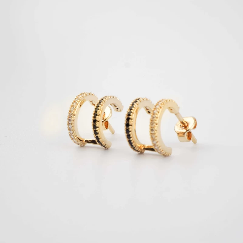 Boucles D’oreilles Créoles Duo Black Or – Pomme Cannelle