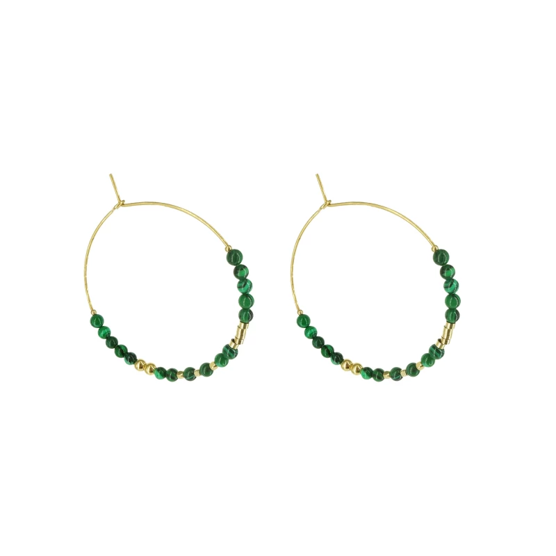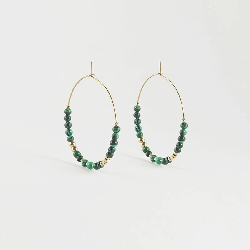 Boucles D’oreilles Créoles Malachite Acier Or – Zag Bijoux