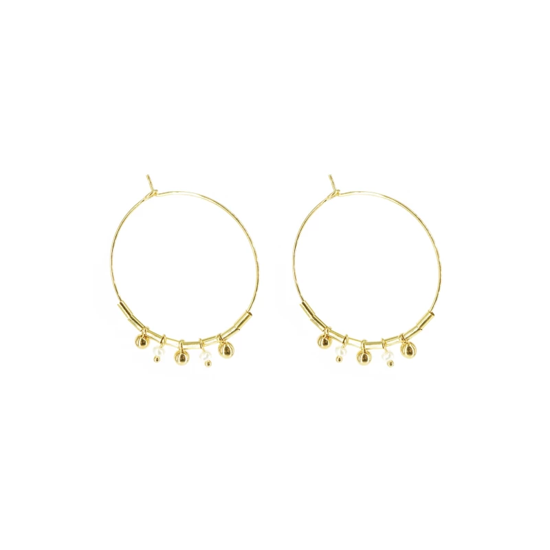 Boucles D’oreilles Créoles Perles Or – Pomme Cannelle