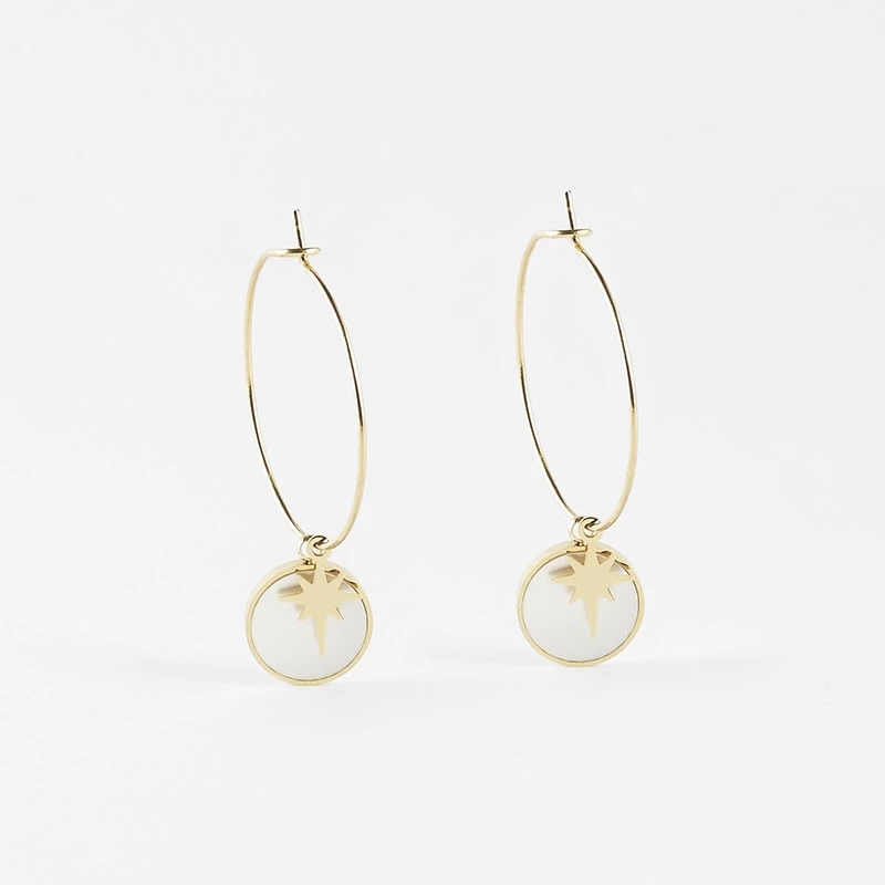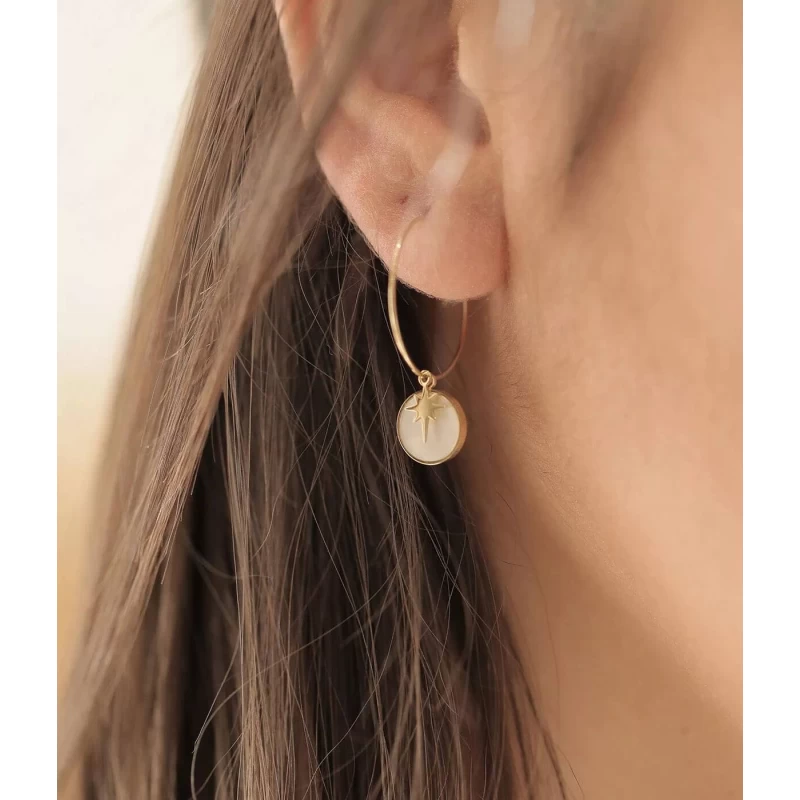 Dans un style fin et élaboré, ces créoles sublimeront votre look toute l’année. +++ la combinaison de la nacre et du doré est très flatteuse.