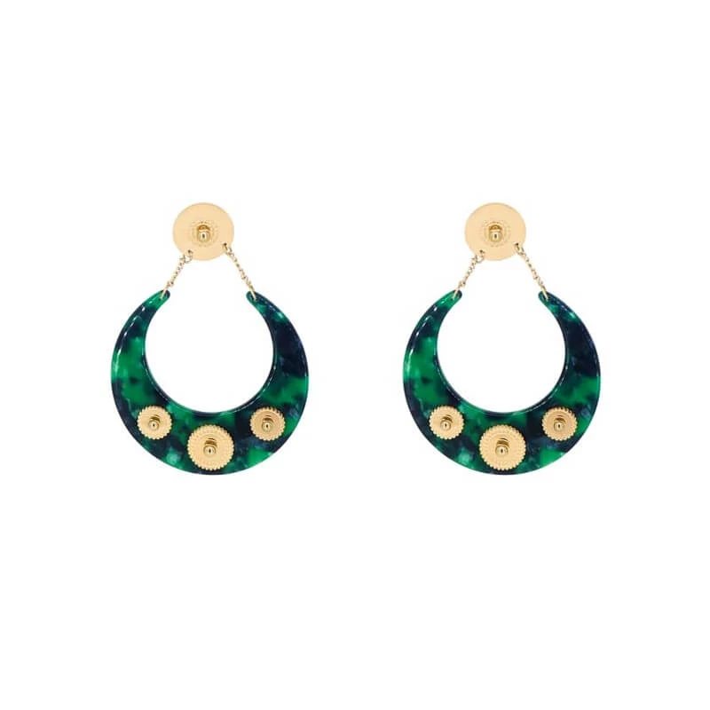 Boucles D’oreilles Lune Acétate Vertes Acier – Zag Bijoux