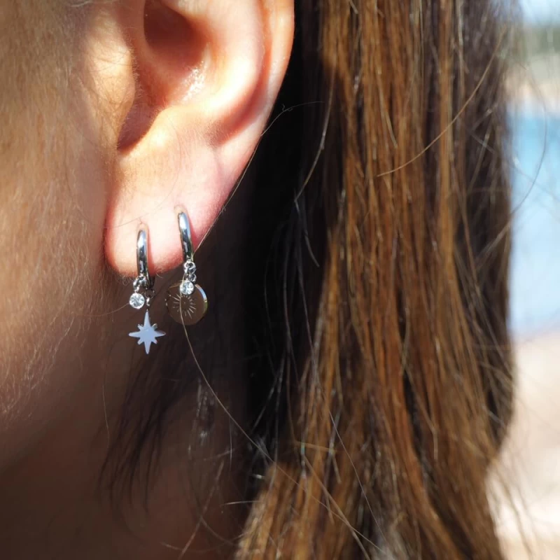 Boucles D’oreilles Mini Créoles Boussole Acier – Zag Bijoux