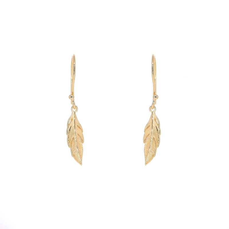 Boucles D’oreilles Plume En Plaqué Or – Pomme Cannelle