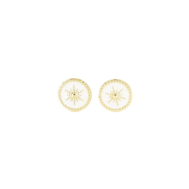 Boucles D’oreilles Soleil émaillé Blanc Or – Pomme Cannelle