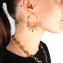 Boucles D’oreilles Boréale En Acier Et Rubis Indien – Zag Bijoux
