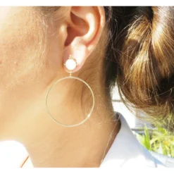 Boucles D’oreilles Cercle Nacre En Acier Or Jaune – Zag Bijoux