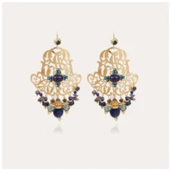 Boucles D’oreilles Cercle Stone Bleu En Acier Or – Zag Bijoux