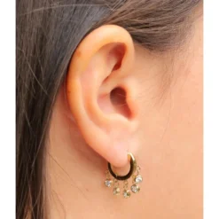 Boucles D’oreilles Cercle Stone Verte En Acier Or – Zag Bijoux
