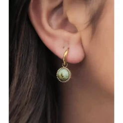 Boucles D’oreilles Mini Créoles Amazonite Acier – Zag Bijoux