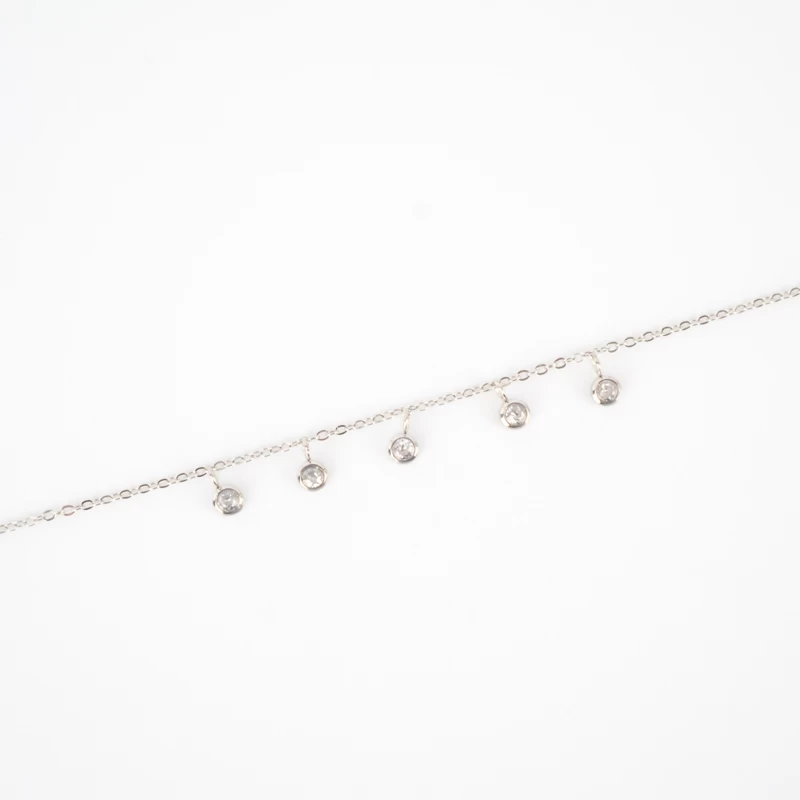 Bracelet chaine en acier à l’or fin sur lequel sont attachées des pierres de couleur zirconiums.