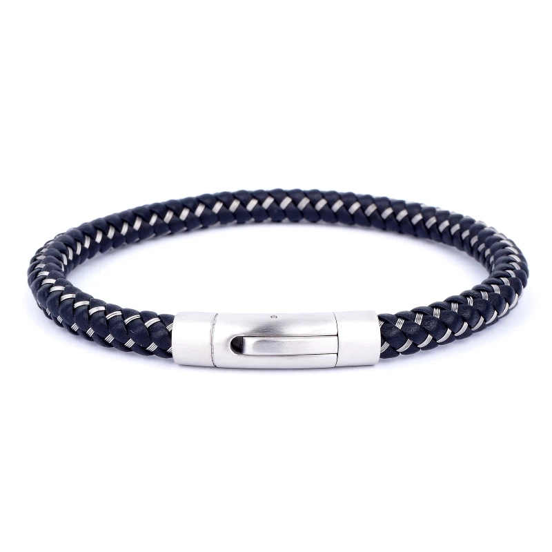 Bracelet Cuir Rond Noir Fermoir Brossé – Ikoba