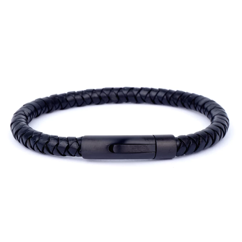 Bracelet Cuir Rond Noir Fermoir Noir Aspect Mat – Ikoba
