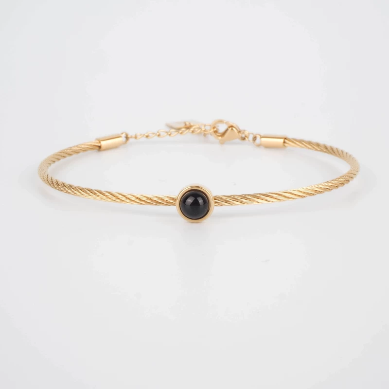 Bracelet Jonc Calypso Onyx En Acier Jaune – Zag Bijoux