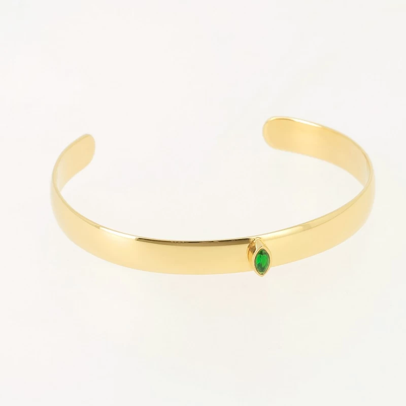 Bracelet jonc émeraude en acier inoxydable doré à l’or fin.