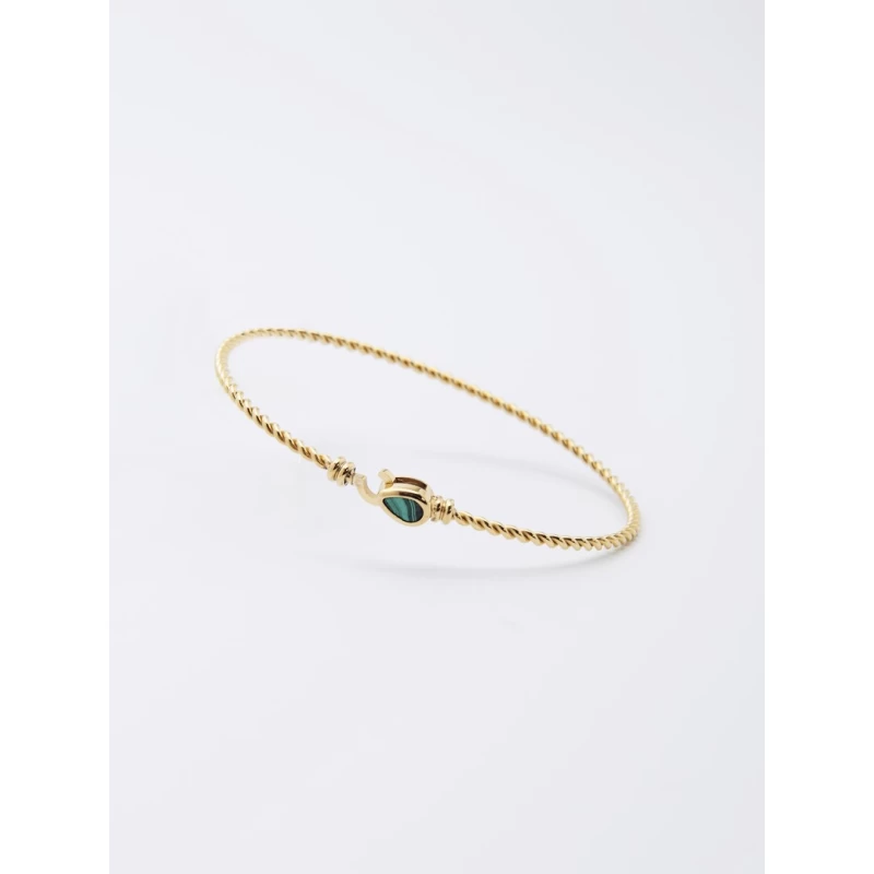 Bracelet jonc goutte malachite en acier inoxydable doré à l’or fin.