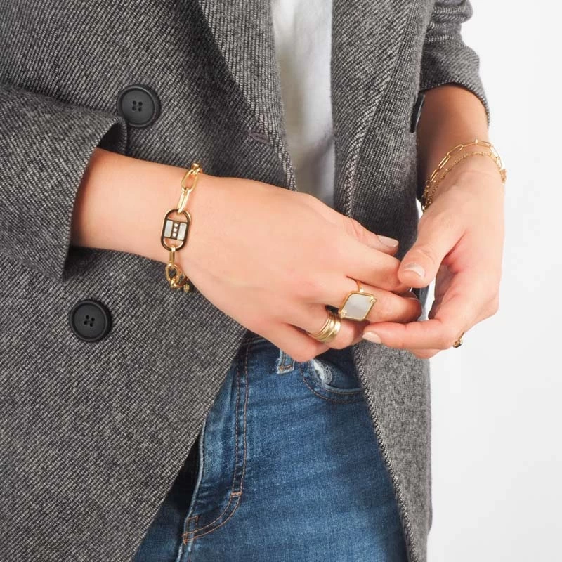 Bracelet Mailles Nacré Acier Or – Zag Bijoux