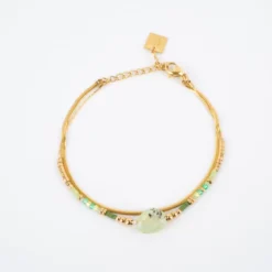 Bracelet multi chaîne doré orné de pierres naturelles verte de ZAG bijoux en acier doré à l’or fin.
