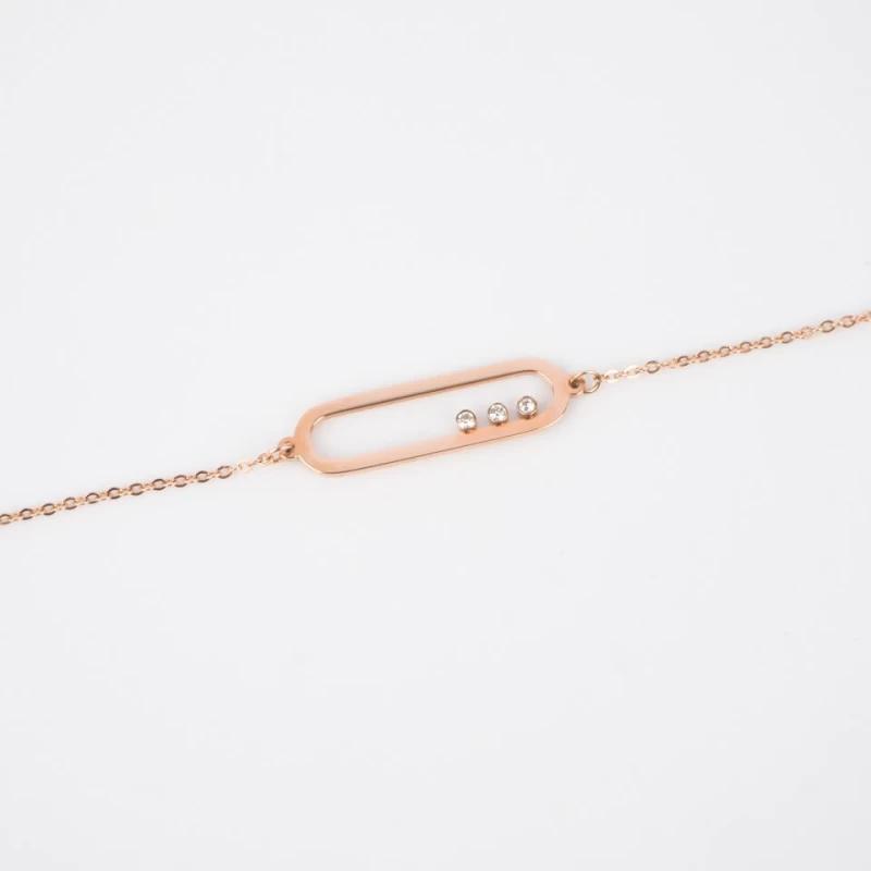 Bracelet Ovale 3 Oxydes En Acier Rose – Zag Bijoux
