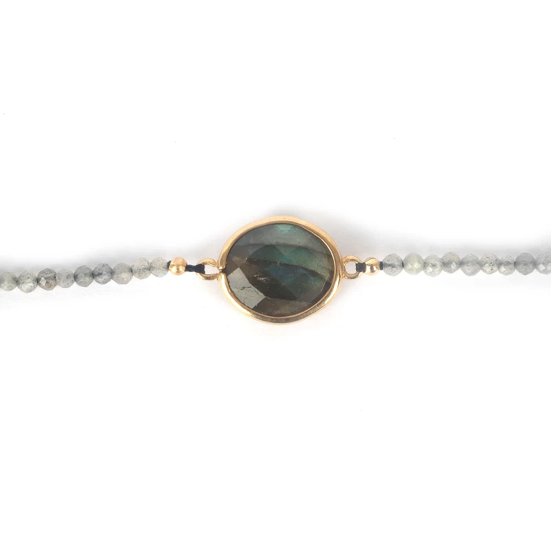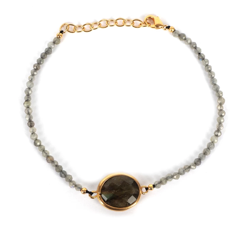 Bracelet plaqué or, orné de ses élégantes pierres naturelles et accompagné d’une élégante pierre centrale.