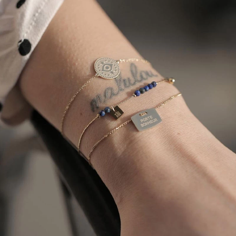Bracelet Stone Lapis Lazuli En Acier Or Jaune – Zag Bijoux