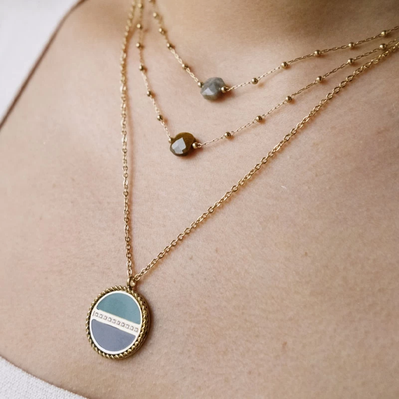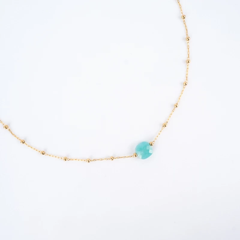Collier Anty Turquoise Acier Or – Zag Bijoux
