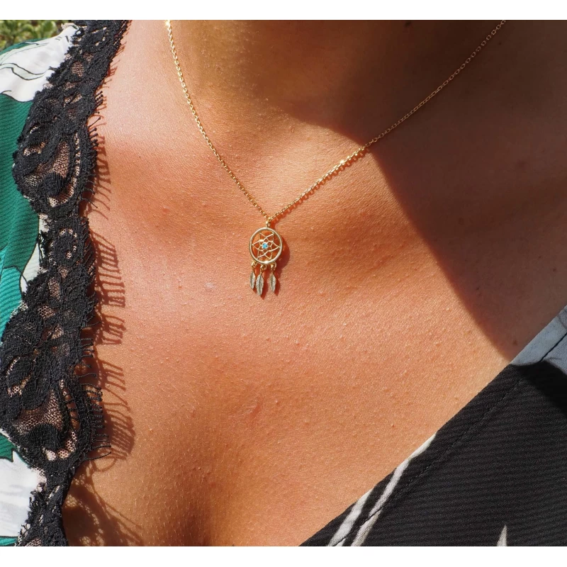 Collier Attrape Rêve Turquoise Plaqué Or – Pomme Cannelle