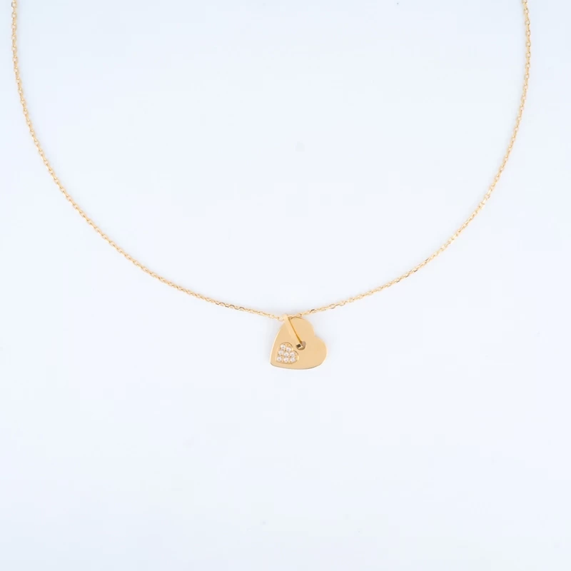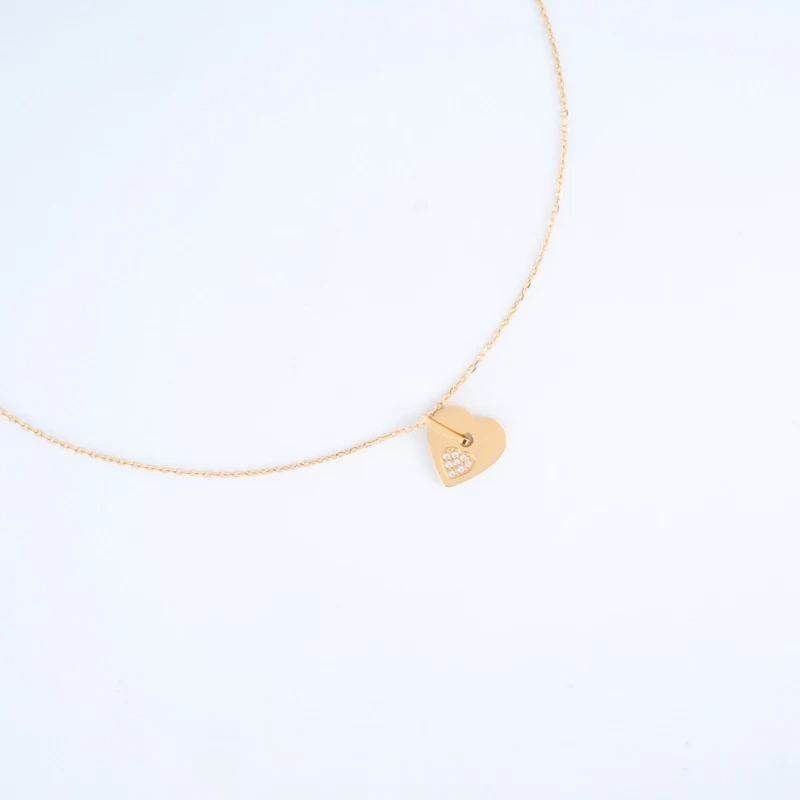 Collier Coeur Zircon En Acier Doré – Zag Bijoux