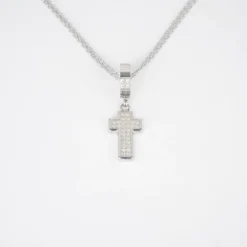 Zag bijoux vous propose ce collier en acier inoxydable représentant une croix ornée d’oxydes de zirconiums colorés blancs.