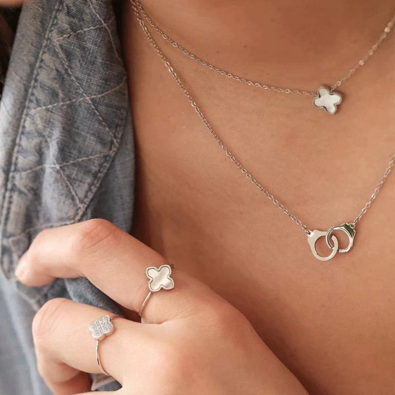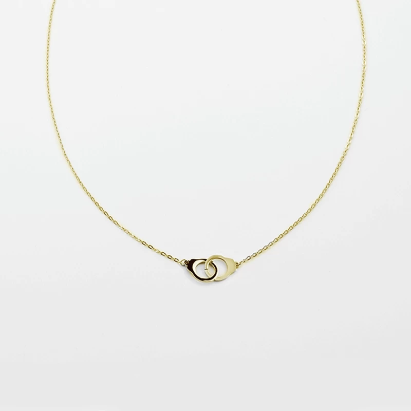 Collier chaîne en acier uni ou doré à l’or fin, sur lequel un motif de menotte est finement accrochée.