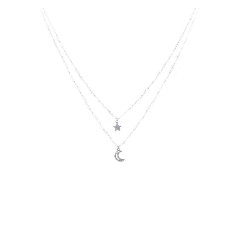 Collier Double Chaînes étoile Lune Argent – Pomme Cannelle