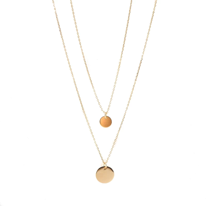 Collier Double Chaînes Pastilles Or – Pomme Cannelle