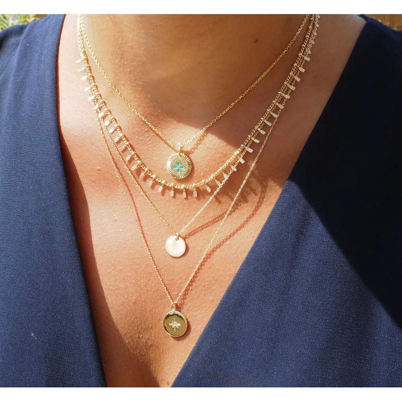 Jouez les superpositions avec ce collier double rangs. Sa pastille polaire apportera un éclat discret à votre cou.