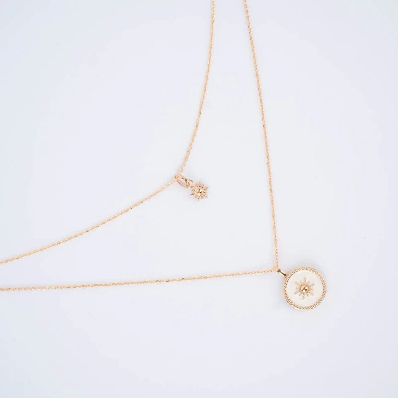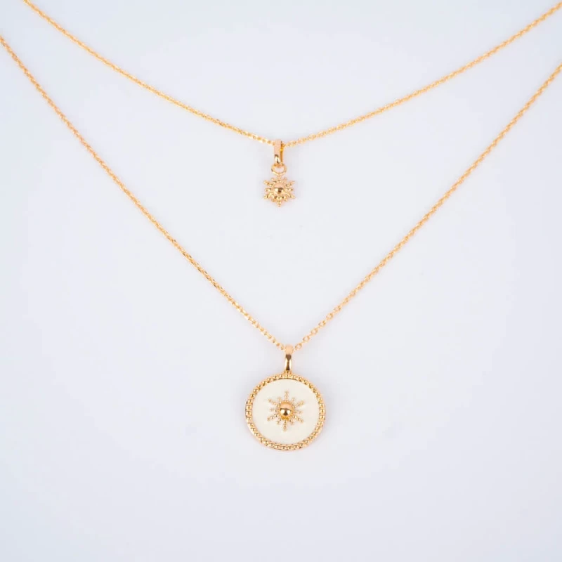 Collier Double Soleils Blanc Or – Pomme Cannelle
