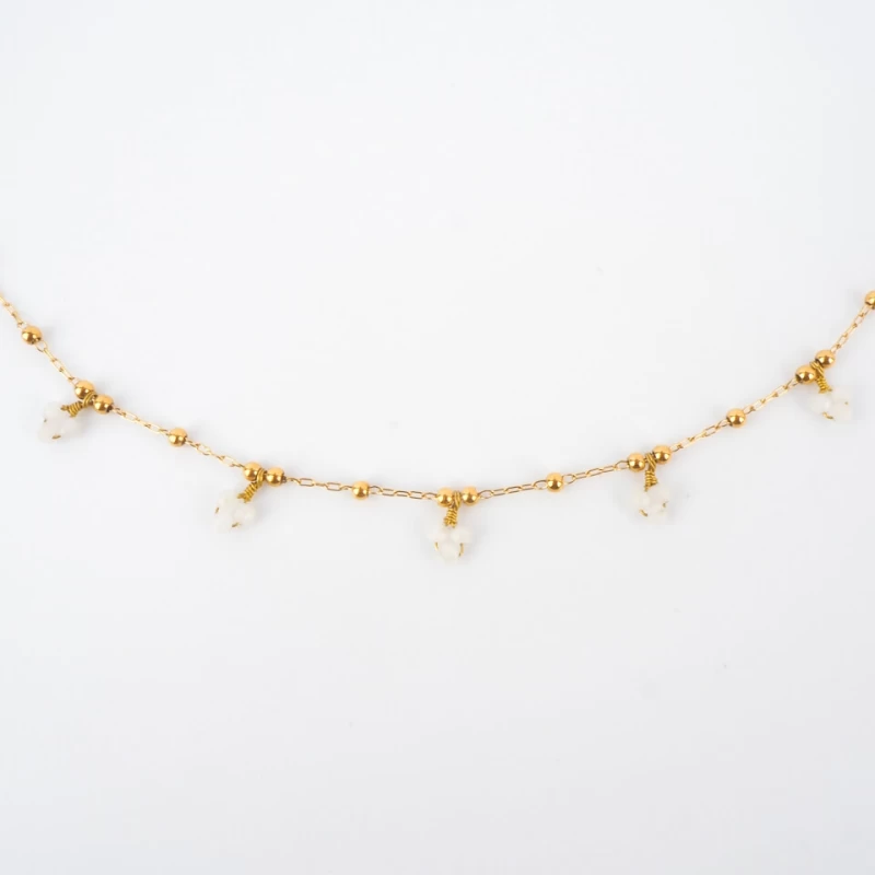 Collier Grappes Agate Blanche En Acier Or Jaune – Zag Bijoux