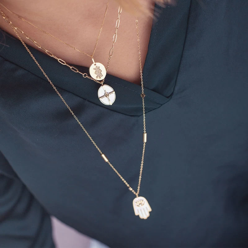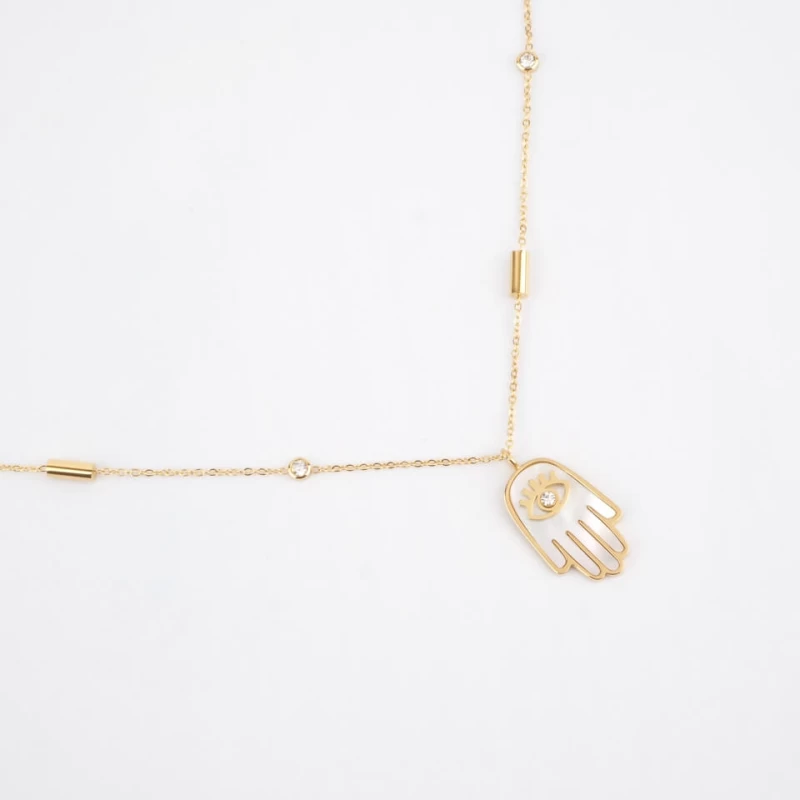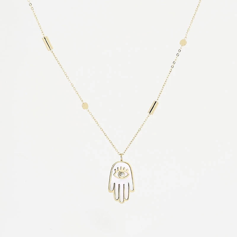 Collier Khamsa En Acier Or Jaune – Zag Bijoux