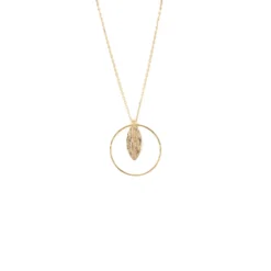 Collier Long Cercle Feuille En Plaqué Or – Pomme Cannelle
