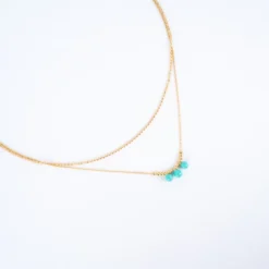 Collier Maddy en acier inoxydable doré à l’or fin sur lequel sont attachées 3 pierres turquoise.