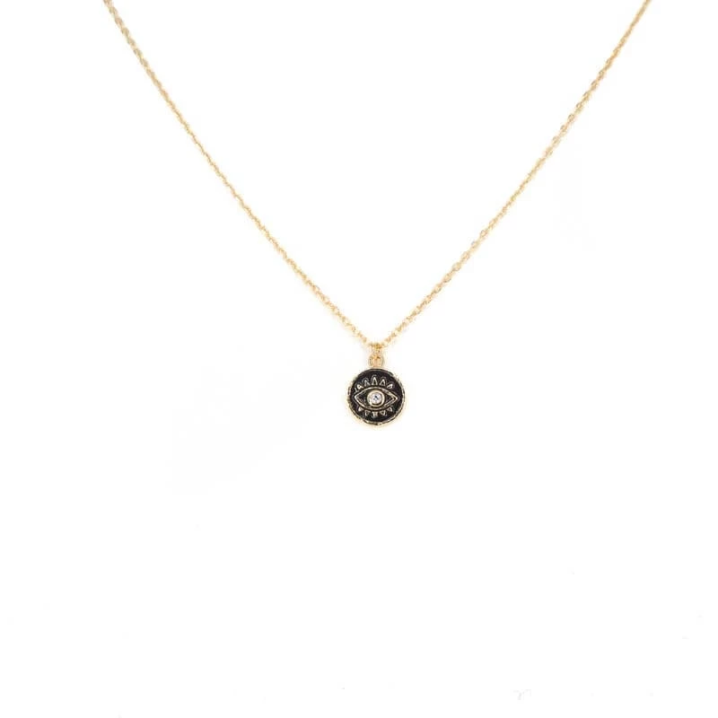 Collier Mini Oeil émaillé Noir En Plaqué Or – Pomme Cannelle