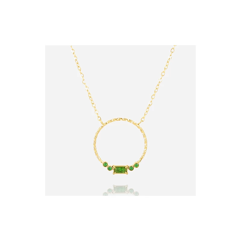 Collier Precious Circle Vert En Acier Doré – Zag Bijoux