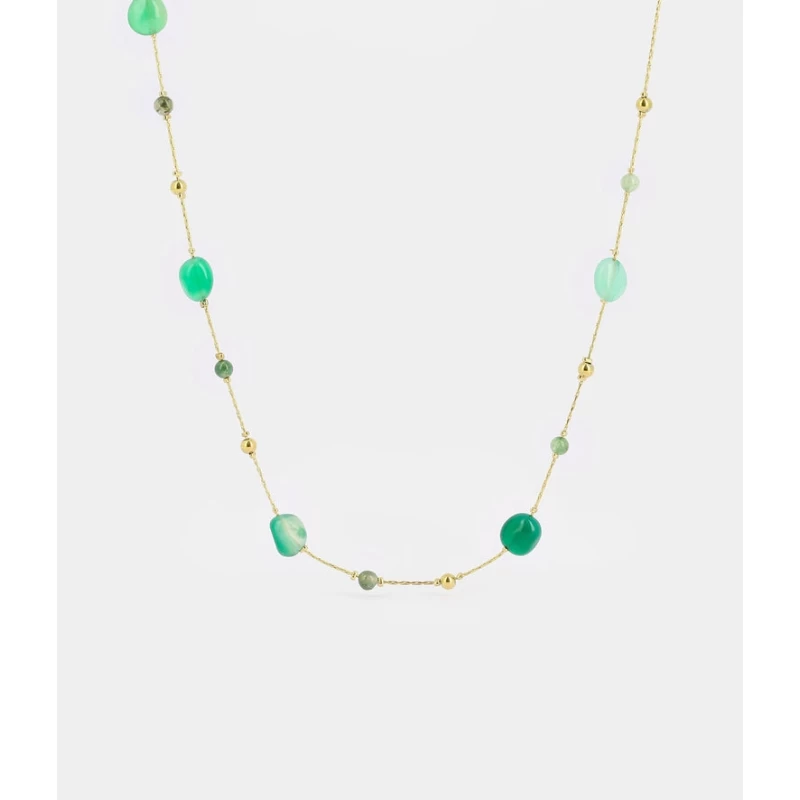 Collier en acier doré à l’or fin parsemé de pierres naturelles.