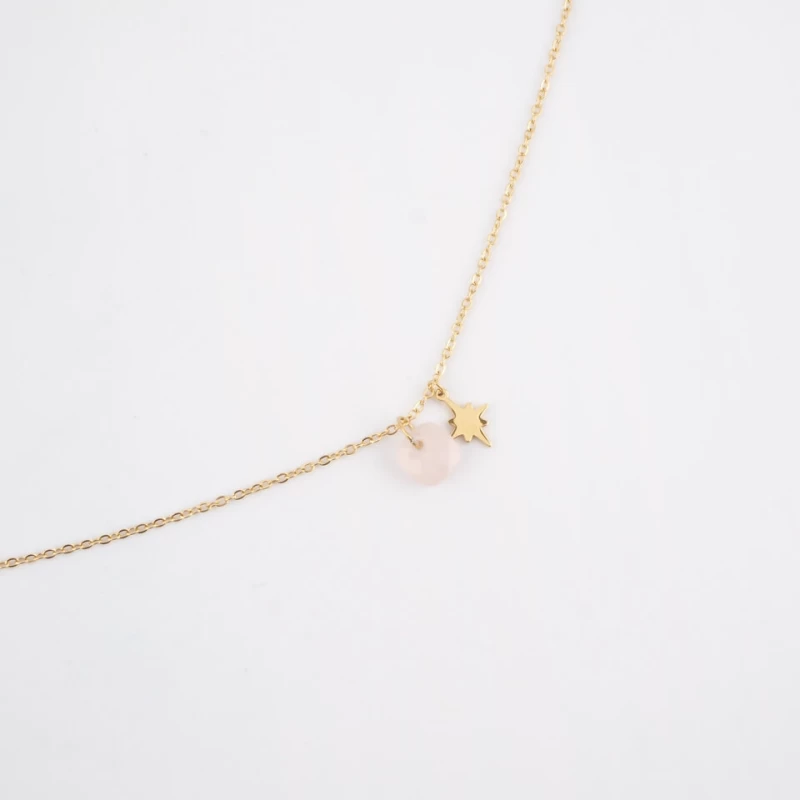 Collier Stone Polar Acier Or Jaune Et Quartz Rose – Zag Bijoux