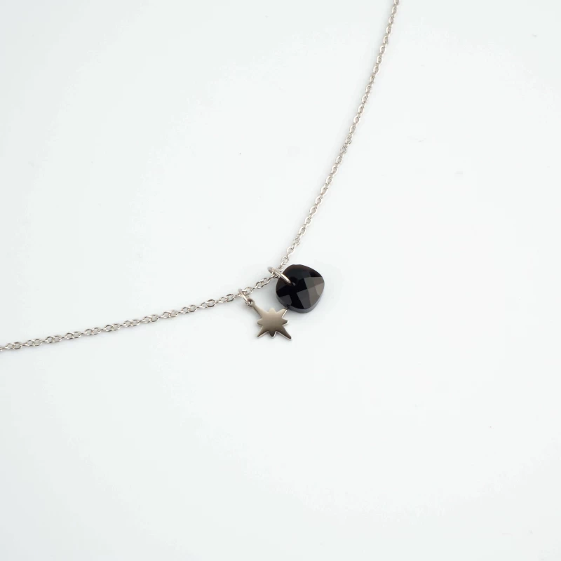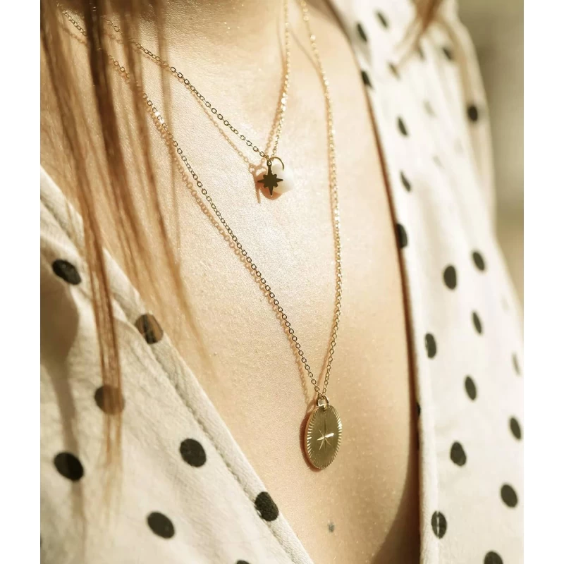 La combinaison de la pierre semi-précieuse et de la petite étoile du nord épousera votre décolleté avec élégance et simplicité.