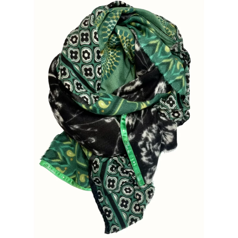 Les Foulards Shanna sont des articles « Made in Belgium » super Tendance réalisés entièrement à la main avec des matières de haute qualité et en séries très limitées. Composés généralement de quatre empiècements, ils sont garnis de liserés en satin, de velours, de franges, de pierreries,… avec une finition très soignée!
