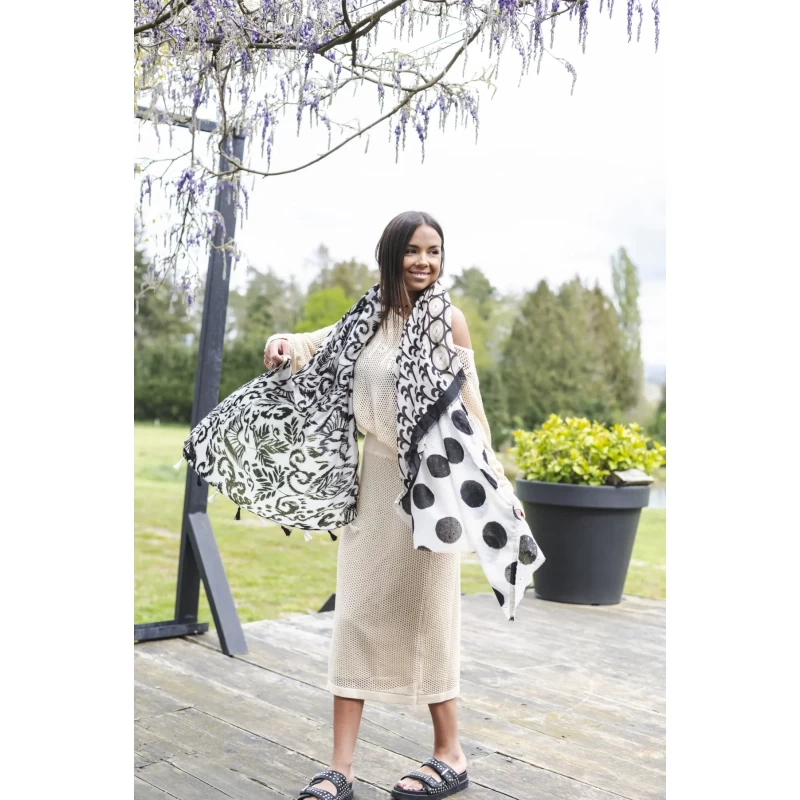 Les Foulards Shanna sont des articles « Made in Belgium » super Tendance réalisés entièrement à la main avec des matières de haute qualité et en séries très limitées. Composés généralement de quatre empiècements, ils sont garnis de liserés en satin, de velours, de franges, de pierreries,… avec une finition très soignées !